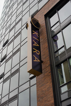 Custom monument sign, vinyl wayfinding, aboards, building banners, elevator graphics, and window clings.